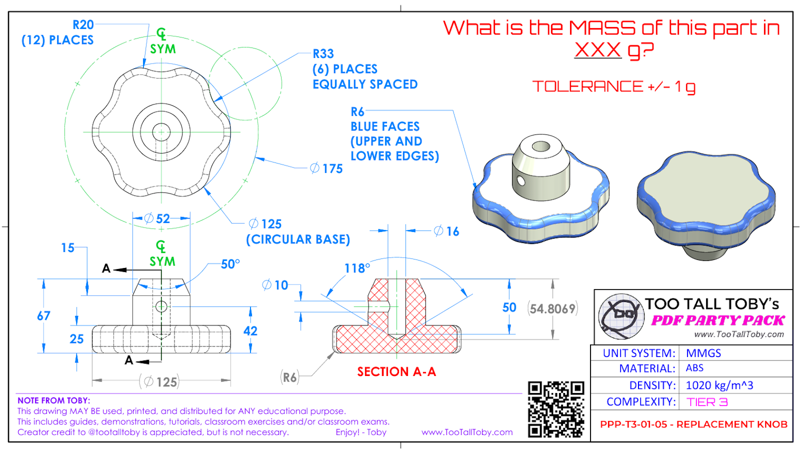 ANSWER KEY PROVIDED - Challenge yourself to create a 3D model from each 2D drawing and calculate the mass. Then check your answers for accuracy!
